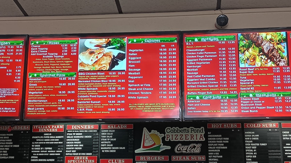 Welcome to Cobbetts Pond Pizzeria, a delightful culinary gem nestled in Windham, NH. This pizzeria is not only renowned for its authentic pizzas but also boasts a diverse menu featuring an array of mouth-watering options. Start with their small subs, ranging from classic American to unique vegetarian varieties, all crafted with fresh ingredients. For those craving a heartier meal, the large steak subs like the Steak Cheese Sub are sure to satisfy.